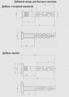 Дюбель-гвоздь "Зонтик" предназначен для крепления теплоизоляционных материалов к бетонному либо кирпичному основанию как снаружи так и внутри помещения.